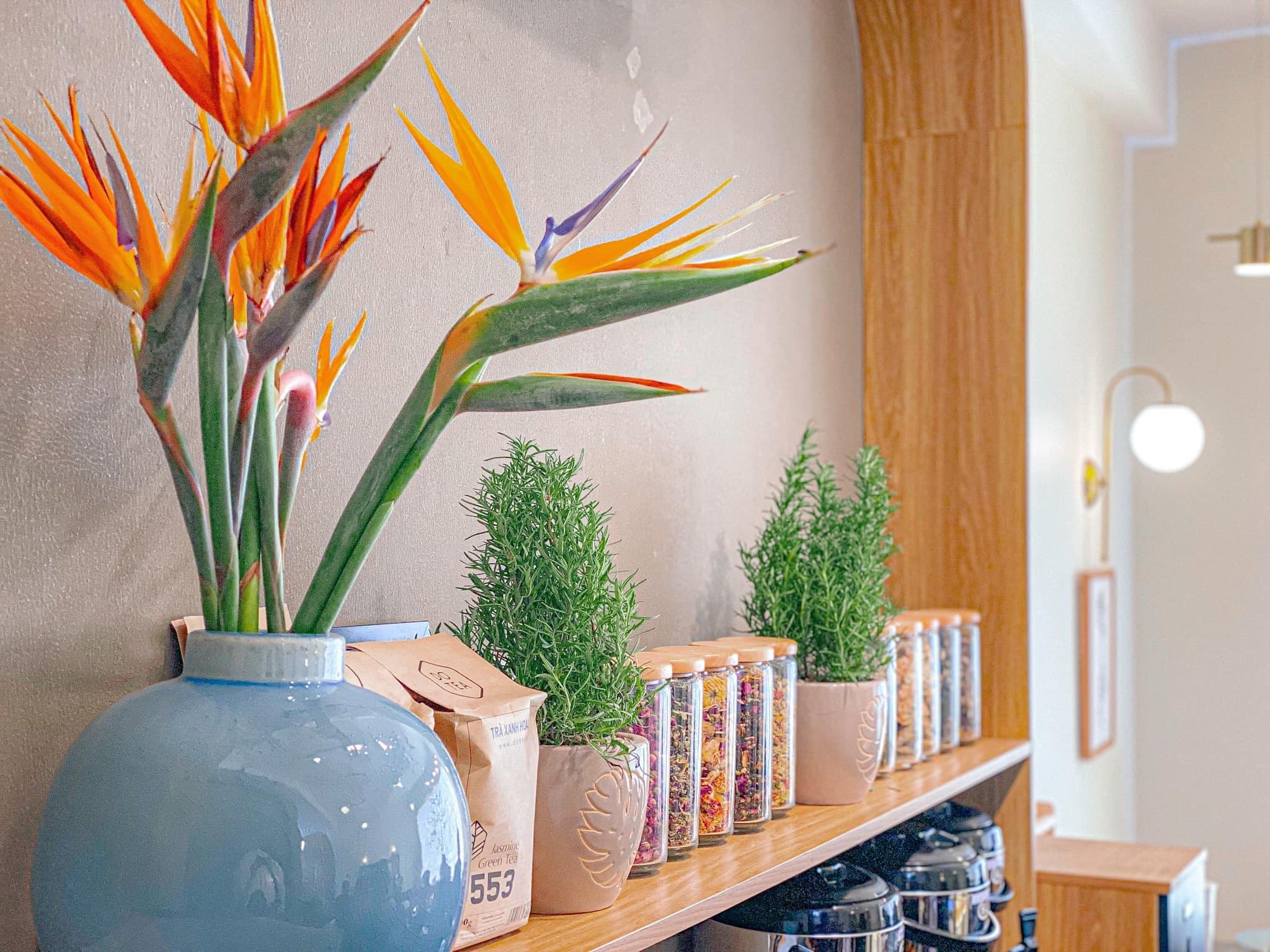 Tầng 2 và tầng 3 được dùng để làm quán cafe và thưởng thức ngắm hoa
