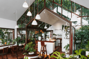 - Cây xanh và hoa: Trồng nhiều cây xanh và hoa trong và xung quanh quán để tạo cảm giác tươi mới và gần gũi với thiên nhiên.