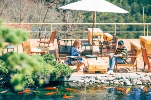 - Hồ nước và tiểu cảnh: Một số quán cafe phong cách Đà Lạt còn có hồ nước nhỏ, tiểu cảnh thác nước để tạo không gian thư giãn và gần gũi với thiên nhiên